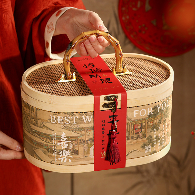 2025 新年ギフトボックス包装箱竹ハンドバスケットギフトボックス蛇年新年スナックボックスキャンディーボックス空箱