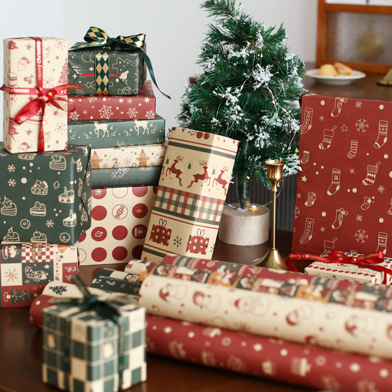 クリスマスプレゼント包装纸大きいサイズ高级感手作りdiy包装材牛革ラップペーパー子供用赤
