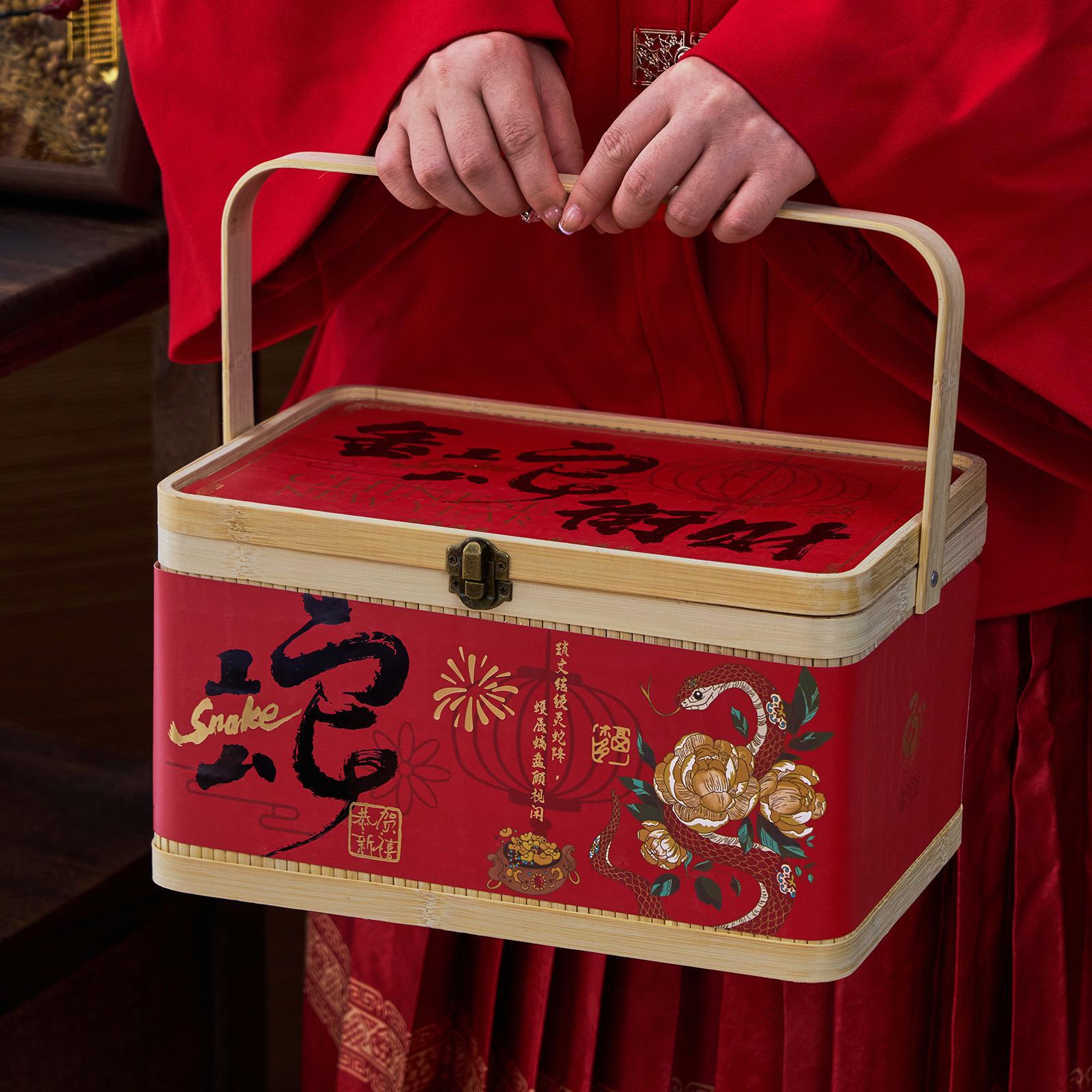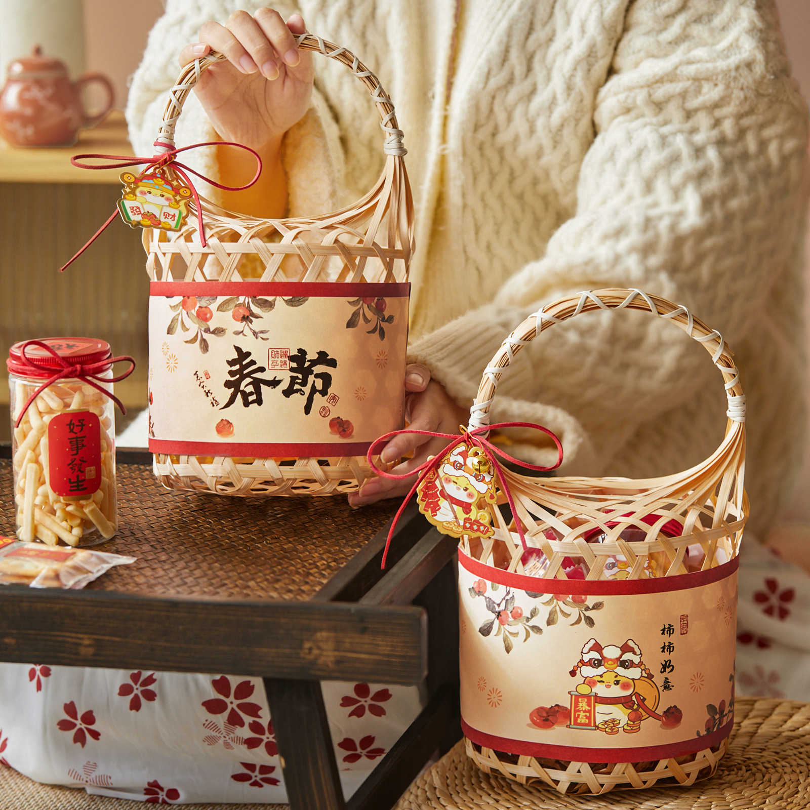 2025蛇年創意新年礼箱包装箱焙煎手提げ年越しキャンディービスケット竹籠ギフト箱空