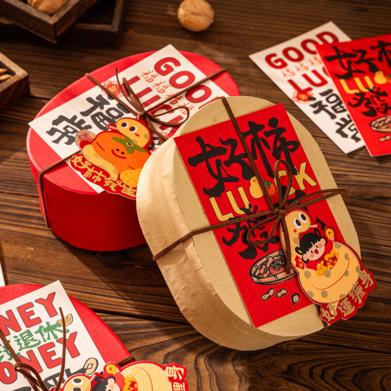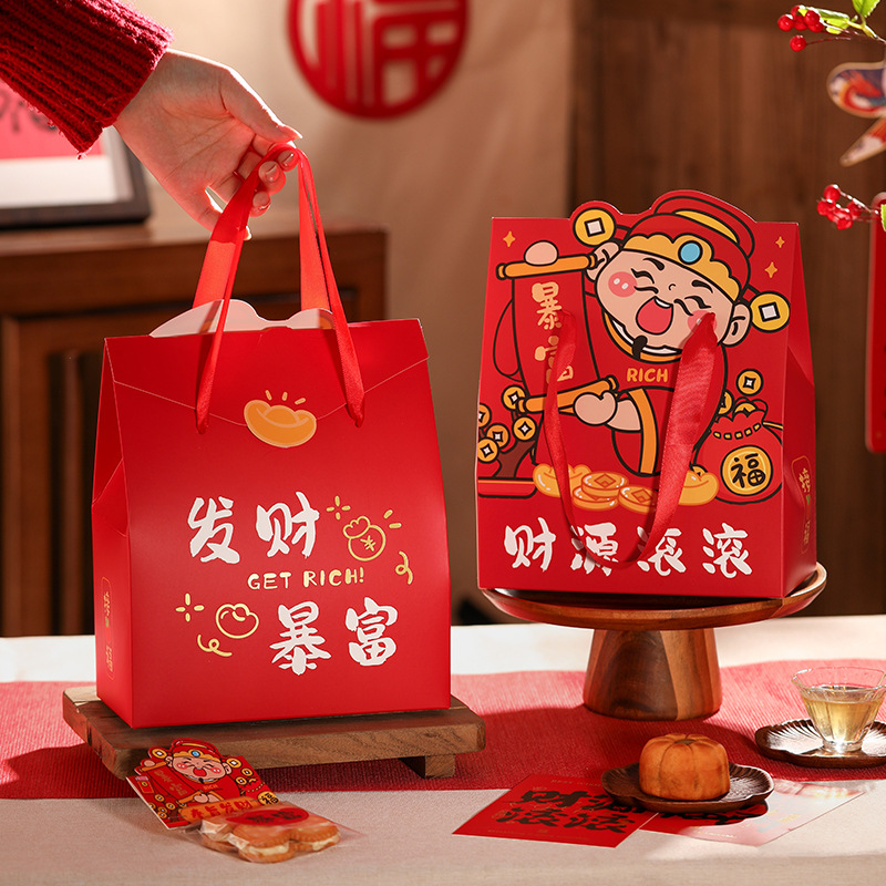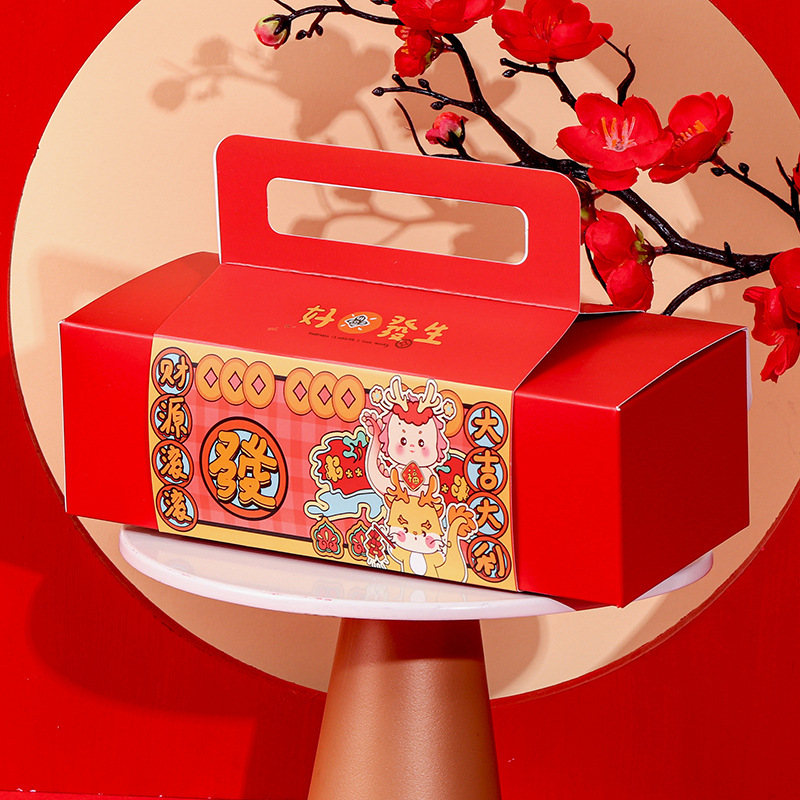 2024龍年手提げ包装箱新年年用品キャンディミルクショートクッキー雪花ショートニングお土産赤いギフトボックス