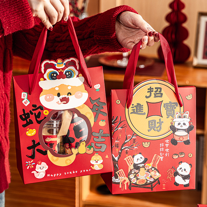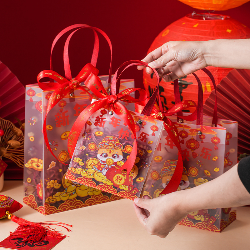 2025年新年蛇年ギフトバッグ年物元旦ギフトプレゼントプレゼント赤い透明手提げ包装袋箱空
