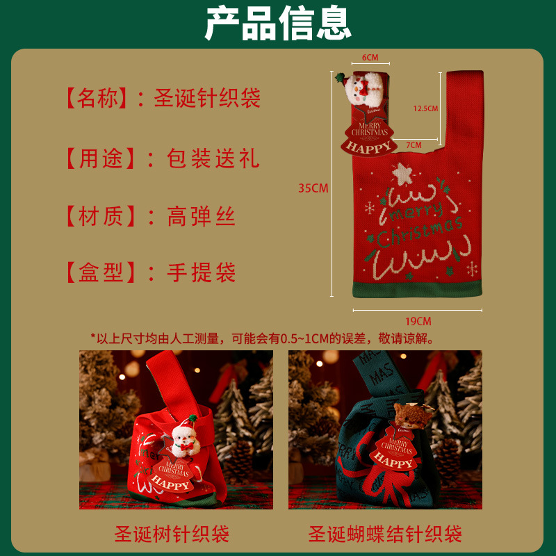 2024クリスマスリンゴ箱クリエイティブ手提げギフト袋キャンディクリスマスイブニット袋プレゼント包装空箱