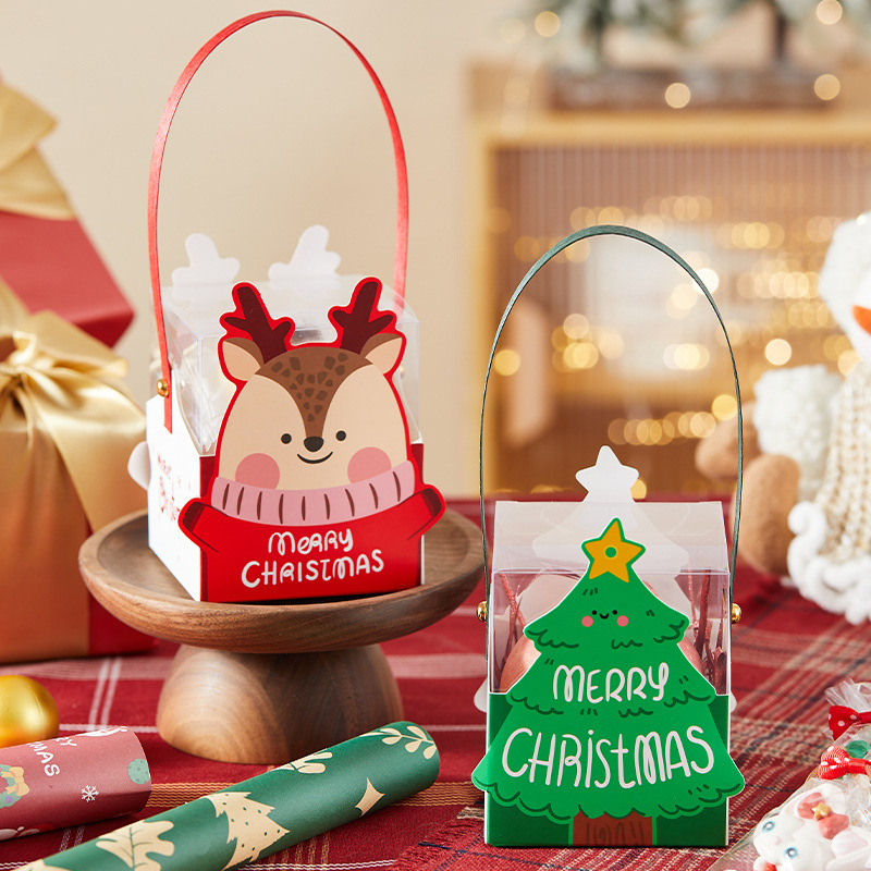 クリスマスリンゴ包装箱霜砂糖ビスケット雪花ショートニング牛圧延砂糖果間食手提げプレゼント透明包装箱