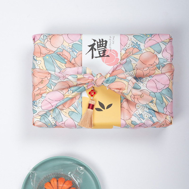 2024年の新型卵黄クッキー蘇式国風包装ギフトボックスのスカーフは綿布風呂敷を包んだ