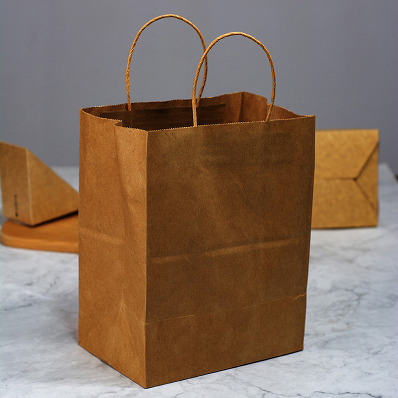 ハンドバッグクラフト紙袋丸いハンドルのハンドバッグ袋焼きレストラン飲料使い捨て環境保護パントースト包装袋