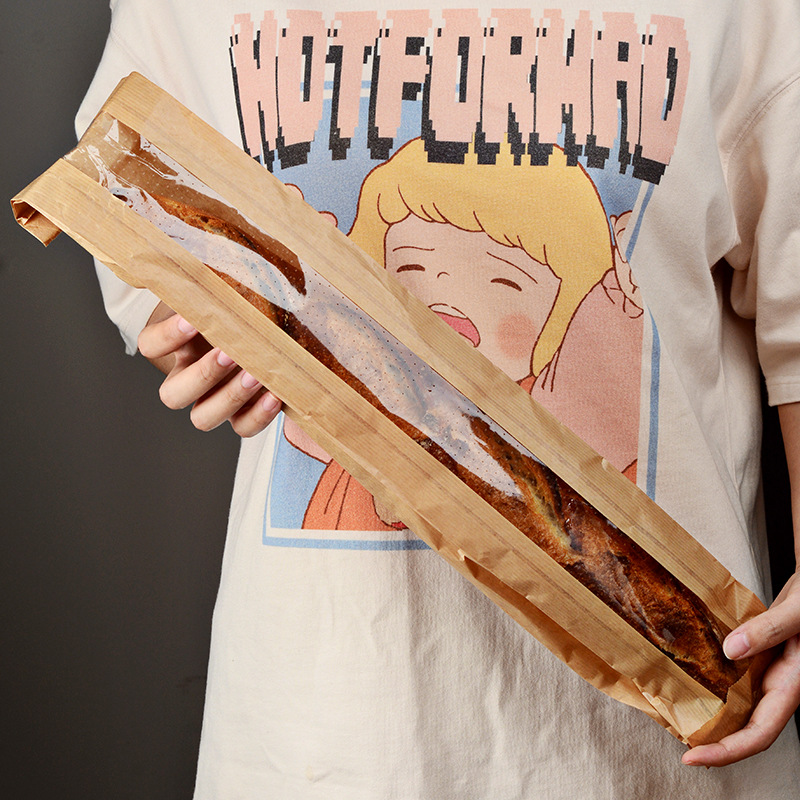 法棒袋輸入絨毯紋淋膜紙材質通気孔長法棒クラフト紙包装袋欧包パン50匹