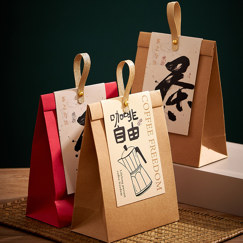 2024レトロ牛革ギフトバッグ赤包装紙袋ティーバッグ耳掛けコーヒービスケット焙煎食品ハンドバッグ