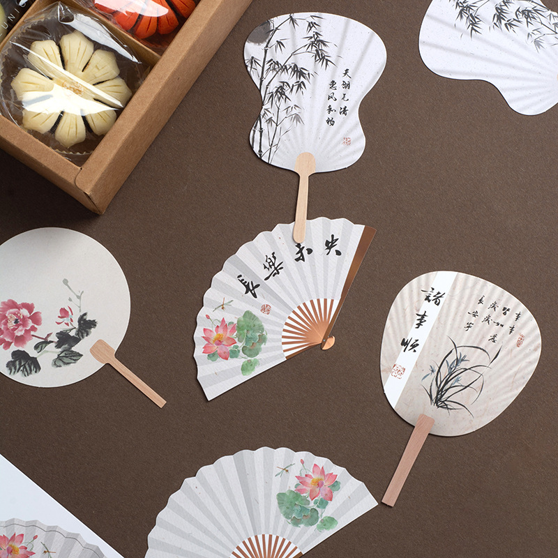 2023創意扇子カード食品包装ギフトボックス卵黄ケーキ蘇式中国式レトログリーティングカードはがき