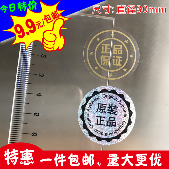 原装保証ドライシール透明シール合格証シール円形合格金色pvc保障ラベル不乾燥