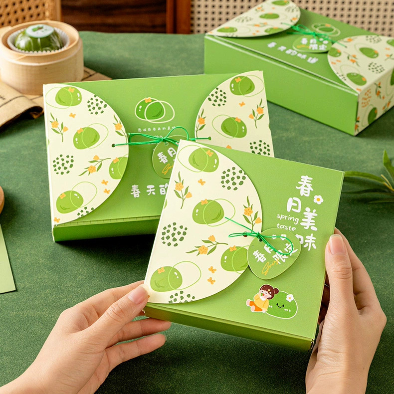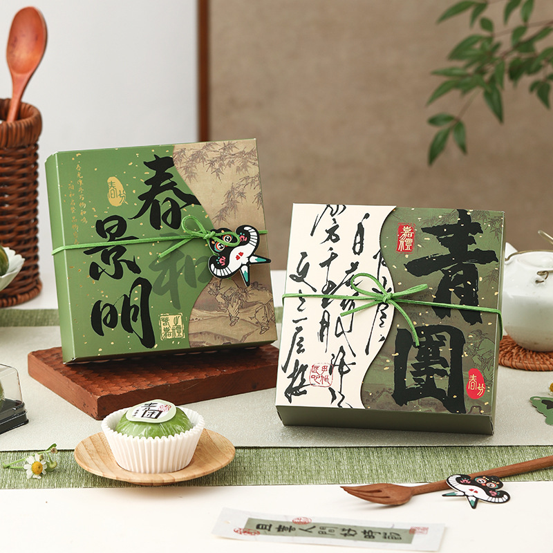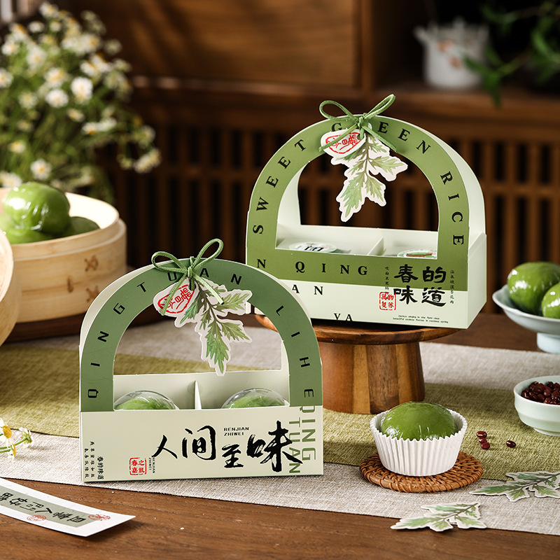 青団包装箱ヨモギ清明節餃子中華菓子ポータブルギフトボックス紙トレイステッカーベーキング包装箱