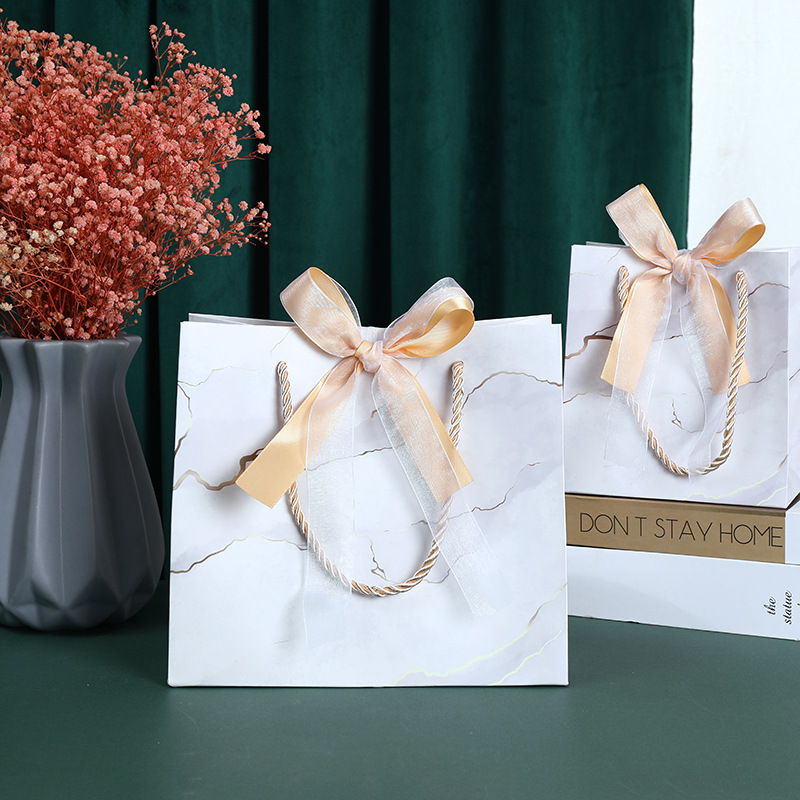 高級大理石柄ギフトバッグ、教師の日バレンタインデーギフト包装袋、ホリデーギフトバッグ紙袋