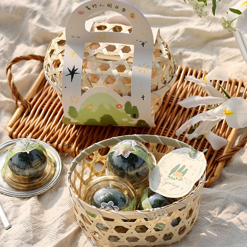 清明節の新型の手作りの青団の包装箱は小さい竹のかごの緑豆のもちの特産品のお土産の手のギフトボックスの空の箱を持ちます。