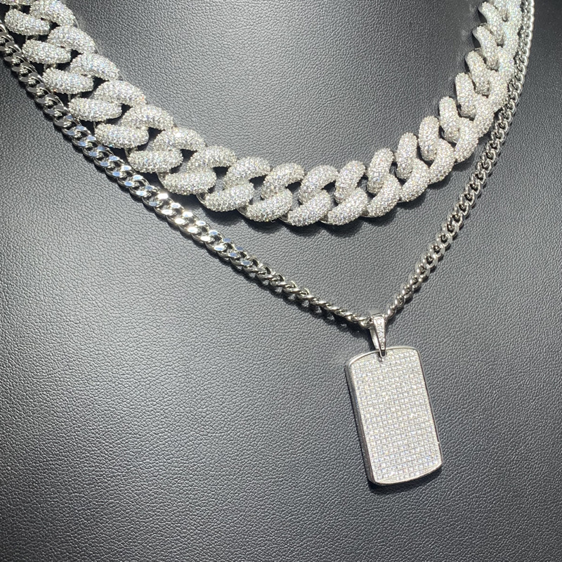 欧米の新商品の軍工の四角形のつり札はジルコンの光身のスキューバチェーンのネックレスの男女のヒップホップアクセサリーの現物を象眼します。