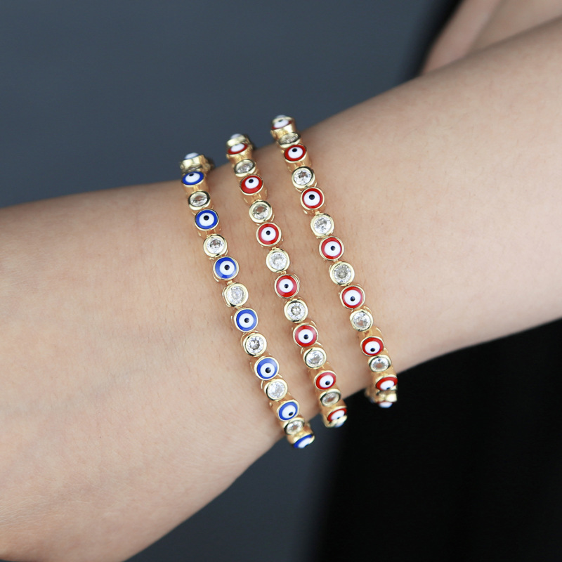 溢喆新商品目ジルコンテニスチェーンの青い赤い油欧米で流行している男女の新しいアクセサリー