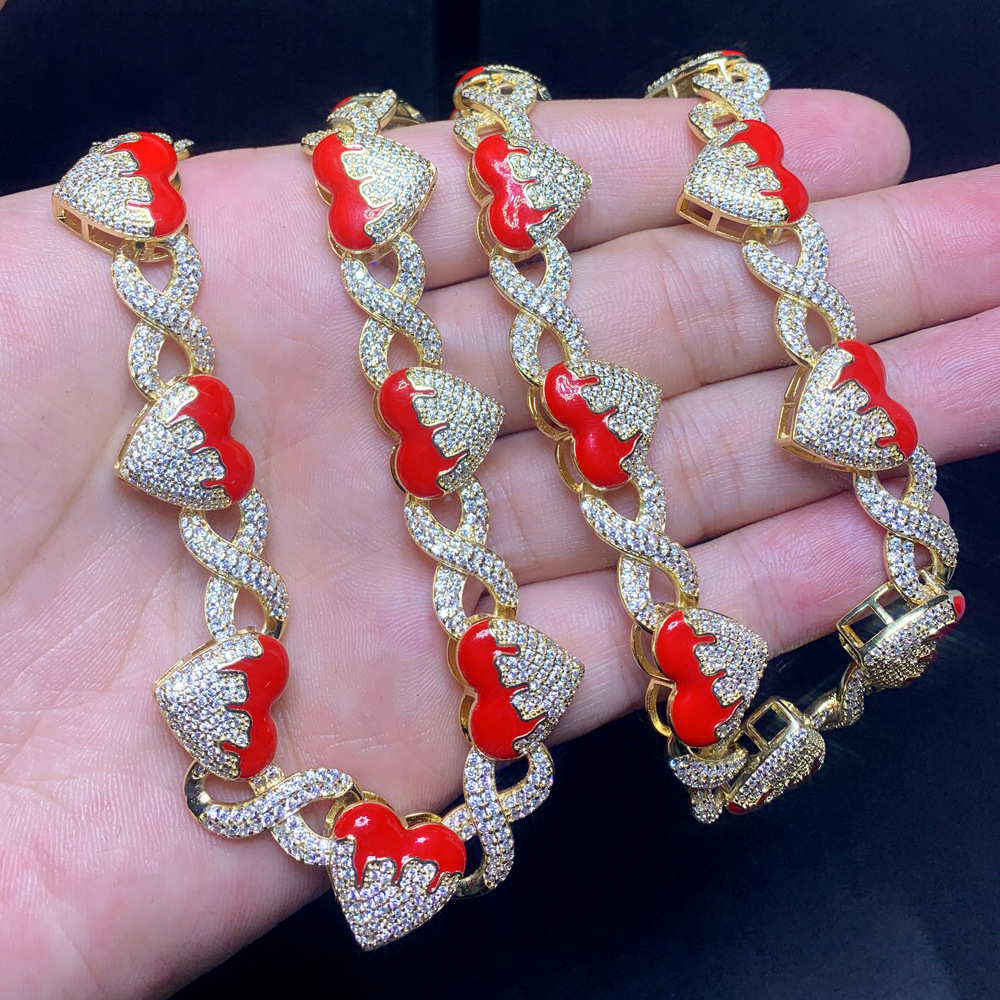 クロスボーダーの新型8字ハート型部品スキューバチェーンのネックレスの赤いオイルはジルコンのパンク風ヒップホップアクセサリーをはめ込んでいます。