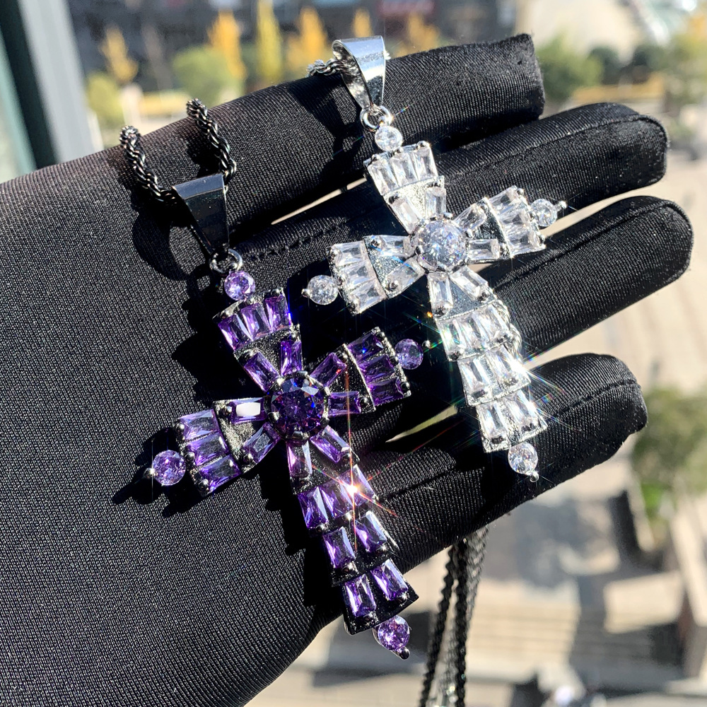 外国貿易の新型の白い紫色の梯子の方の十字のペンダントは麻の花のチェーンのネックレスのパンクの風のヒップホップの装飾品の現物を配合します。