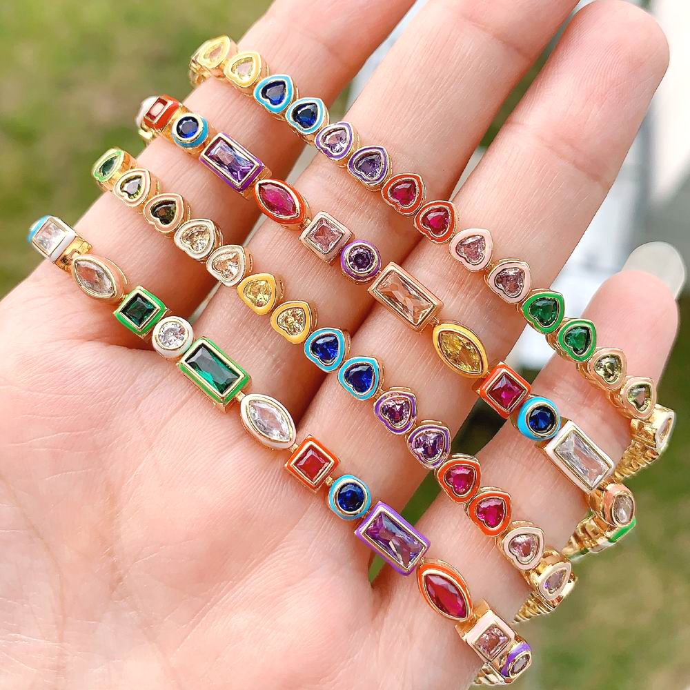 外国貿易の新商品のハート型カラージルコンのテニスチェーンのブレスレットは欧米で流行しています。