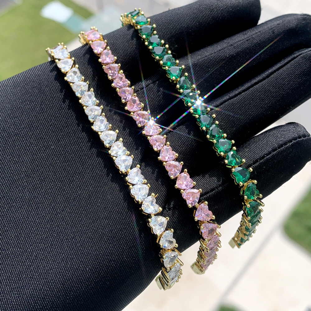 国境を越えた新製品テニスチェーンのブレスレットに白いピンクの緑のハート型ジルコン欧米の流行アクセサリースポットをはめ込んだ