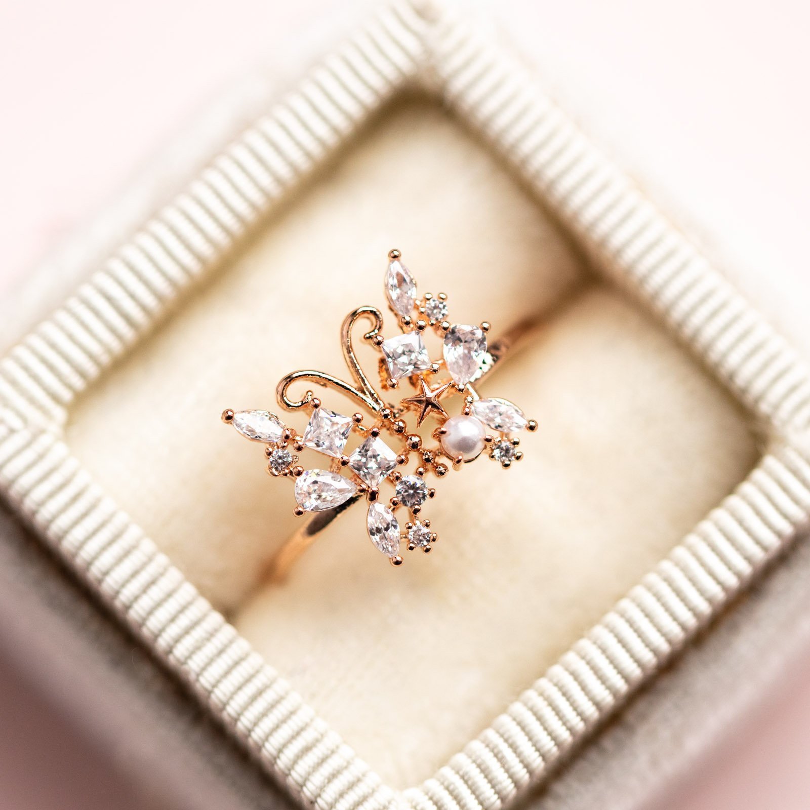 ヒップホップの新型女性はバラの金蝶ジルコンの指輪が流行しています。