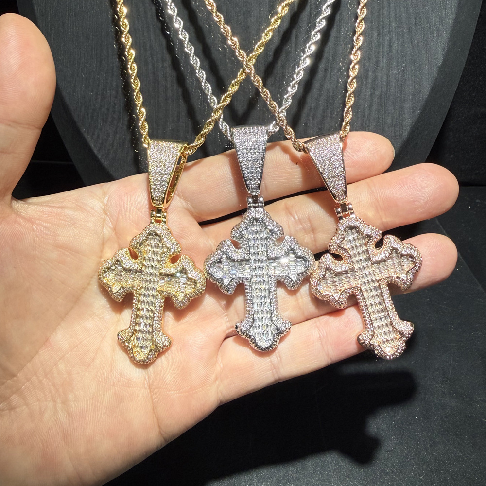 速売通対外貿易新型クロスジルコンペンダントhiphopパンク街頭にジルコンを入れた男性ネックレス卸売り