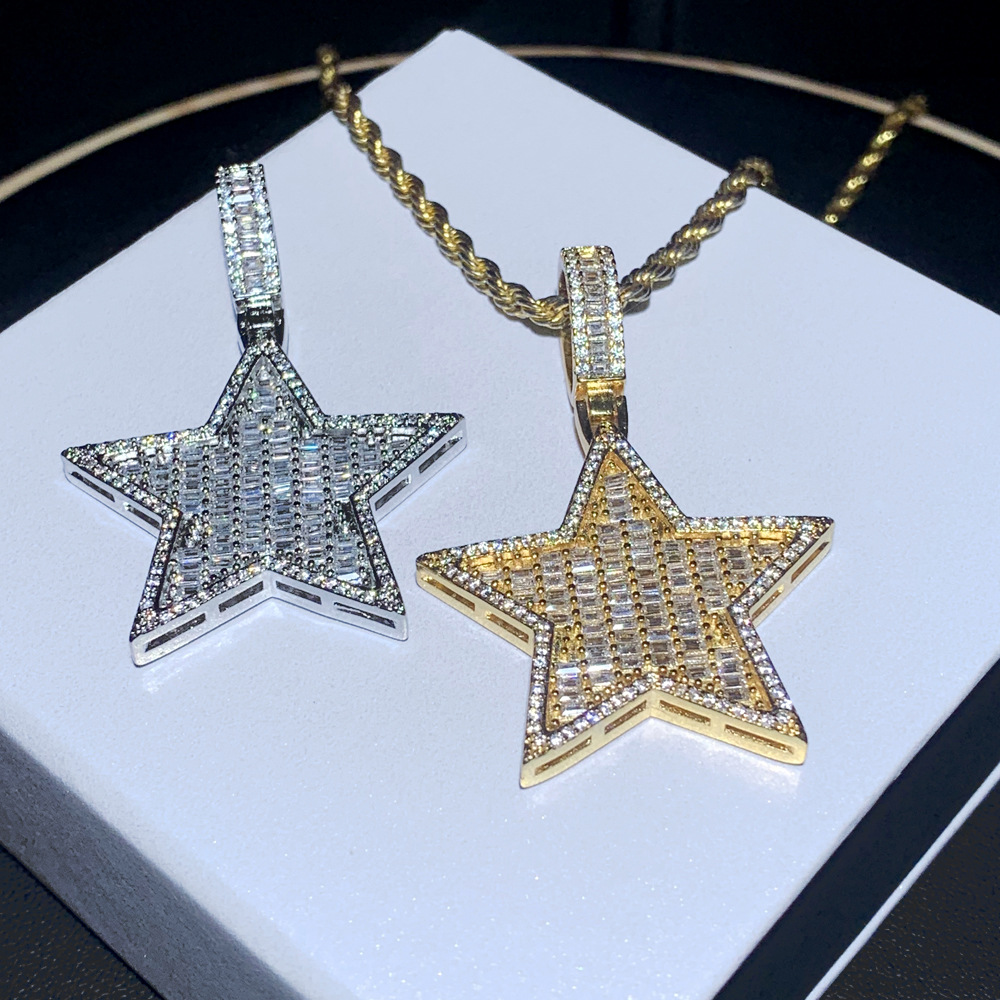 クロスボーダーのヒップホップの新型の五角星のペンダントの銅はジルコンの満ドリルのペンダントのネックレスのファッションの潮流の男性の装飾を入れます。