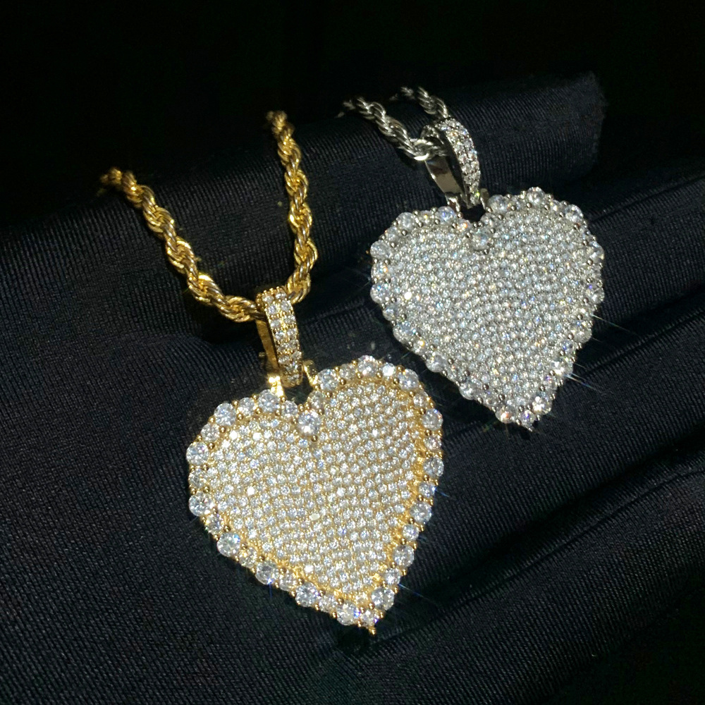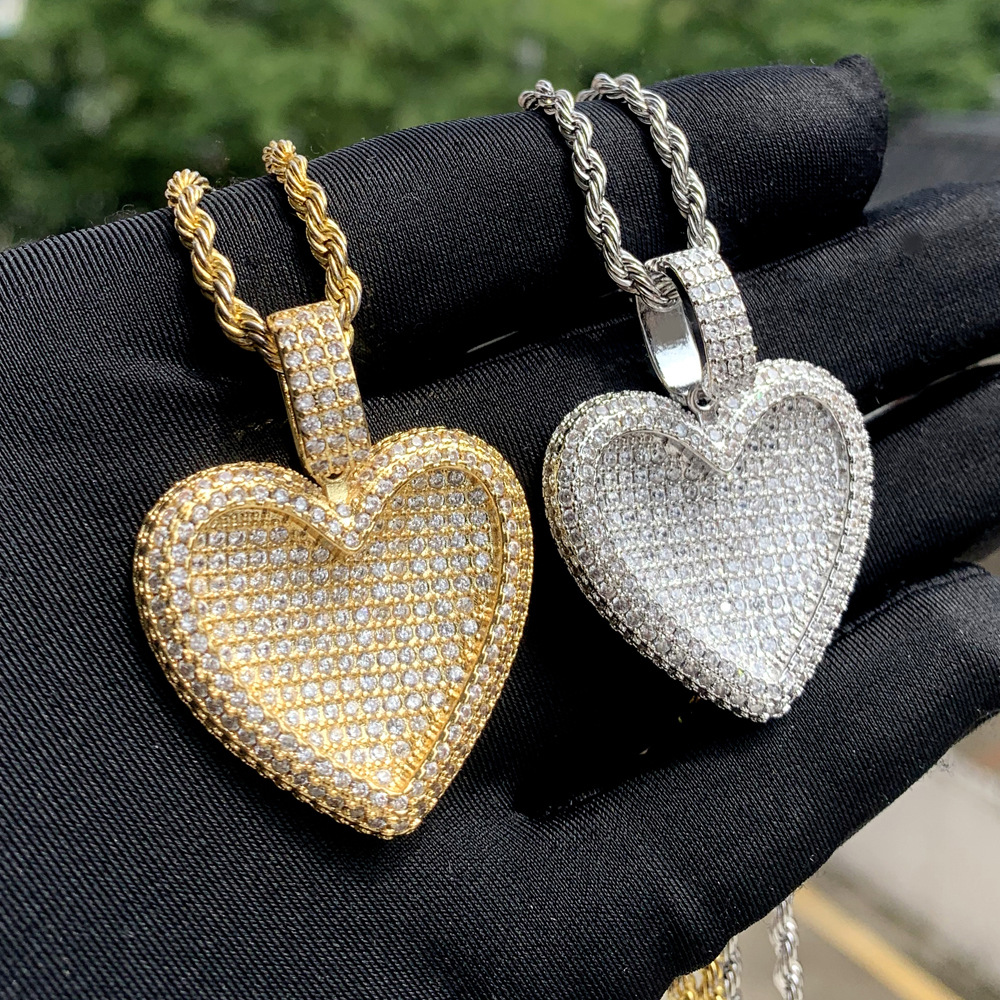 Hiphop新型ハート型ジルコンペンダント欧米ファッションヒップホップ百合入りジルコン女性ネックレスメーカー直販