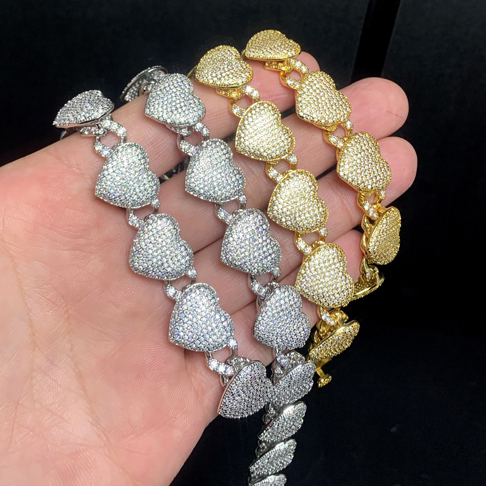 国境を越えたヒップホップの新型15mmハート型ジルコンキューバチェーンネックレスhiphopファッショントレンド個性男女ネックレス