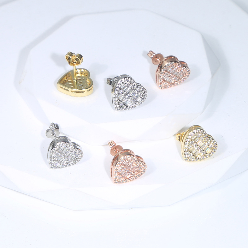 新しいハート型ジルコンピアスins風銅にジルコンを入れた軽やかで贅沢なレトロなファッション女性ヒップホップ耳飾り