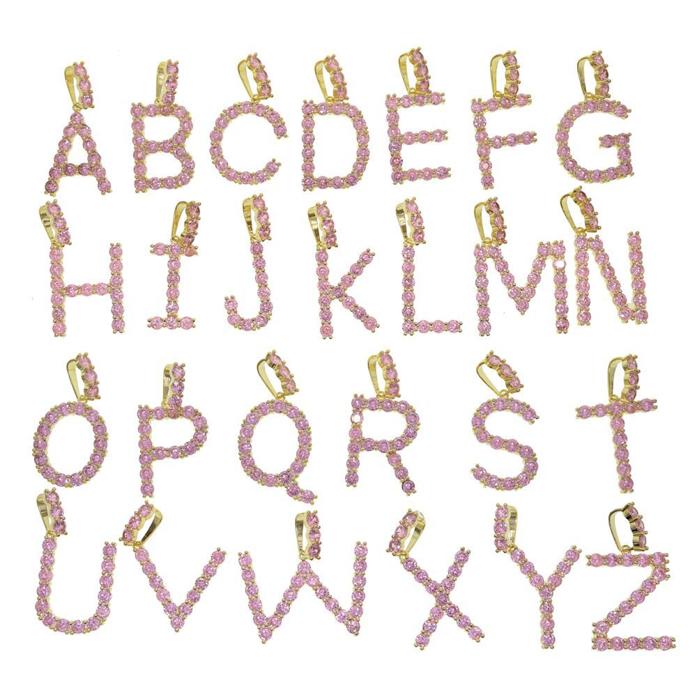 国境を越えたヒップホップの新型ピンクのジルコンはアルファベットのA-Zのペンダントを象眼します。