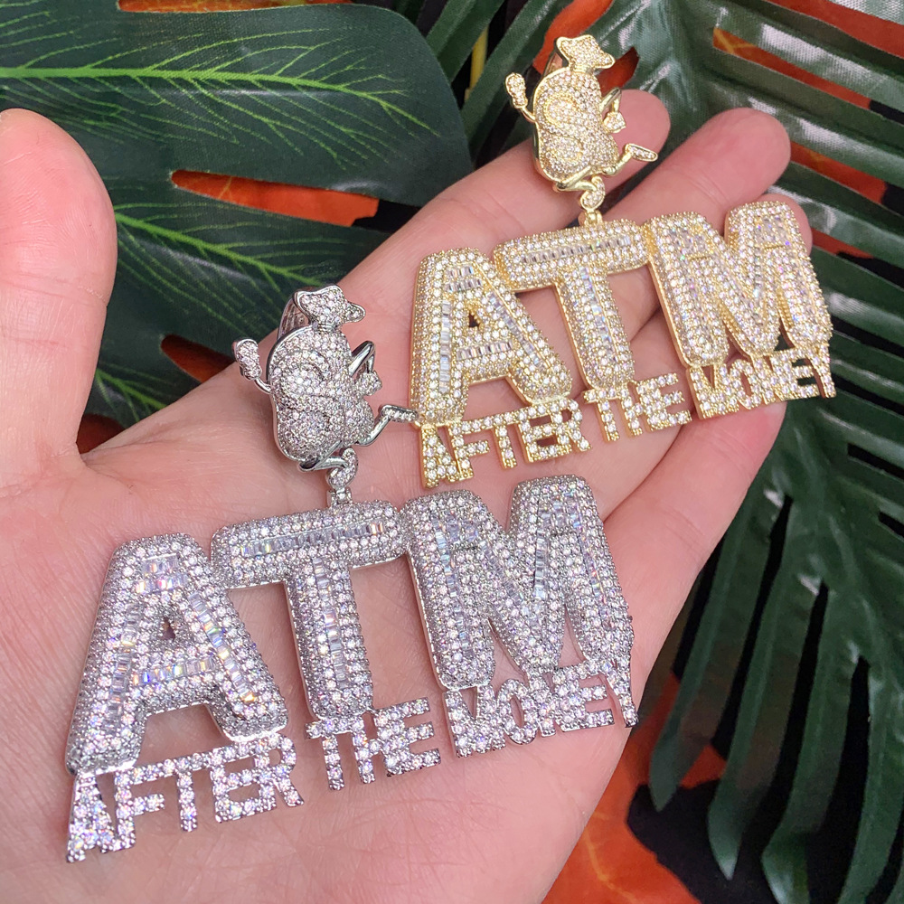 国境を越えたヒップホップの新型atmジルコンペンダントhiphop街頭の個性的な潮男はジルコンのネックレスの現物卸売りを入れます。