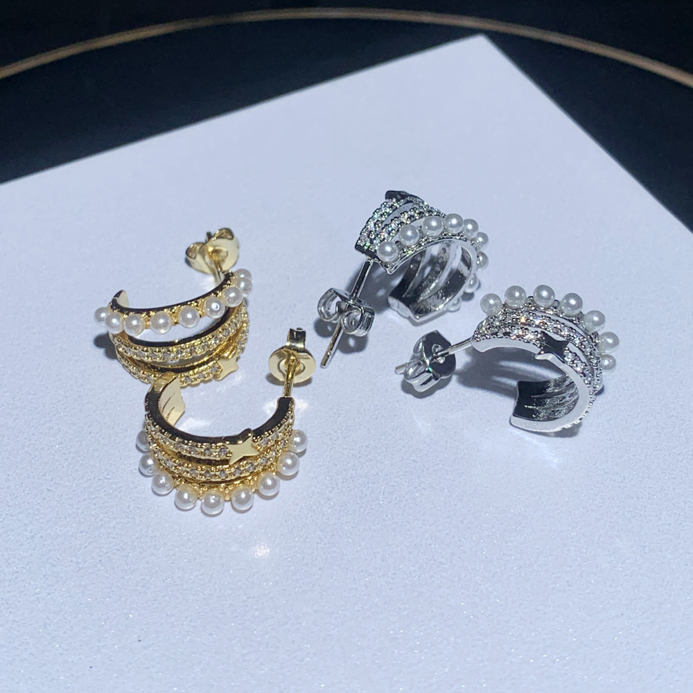 新商品の真珠のジルコンのイヤリングは小さくて精巧で高級感があります。
