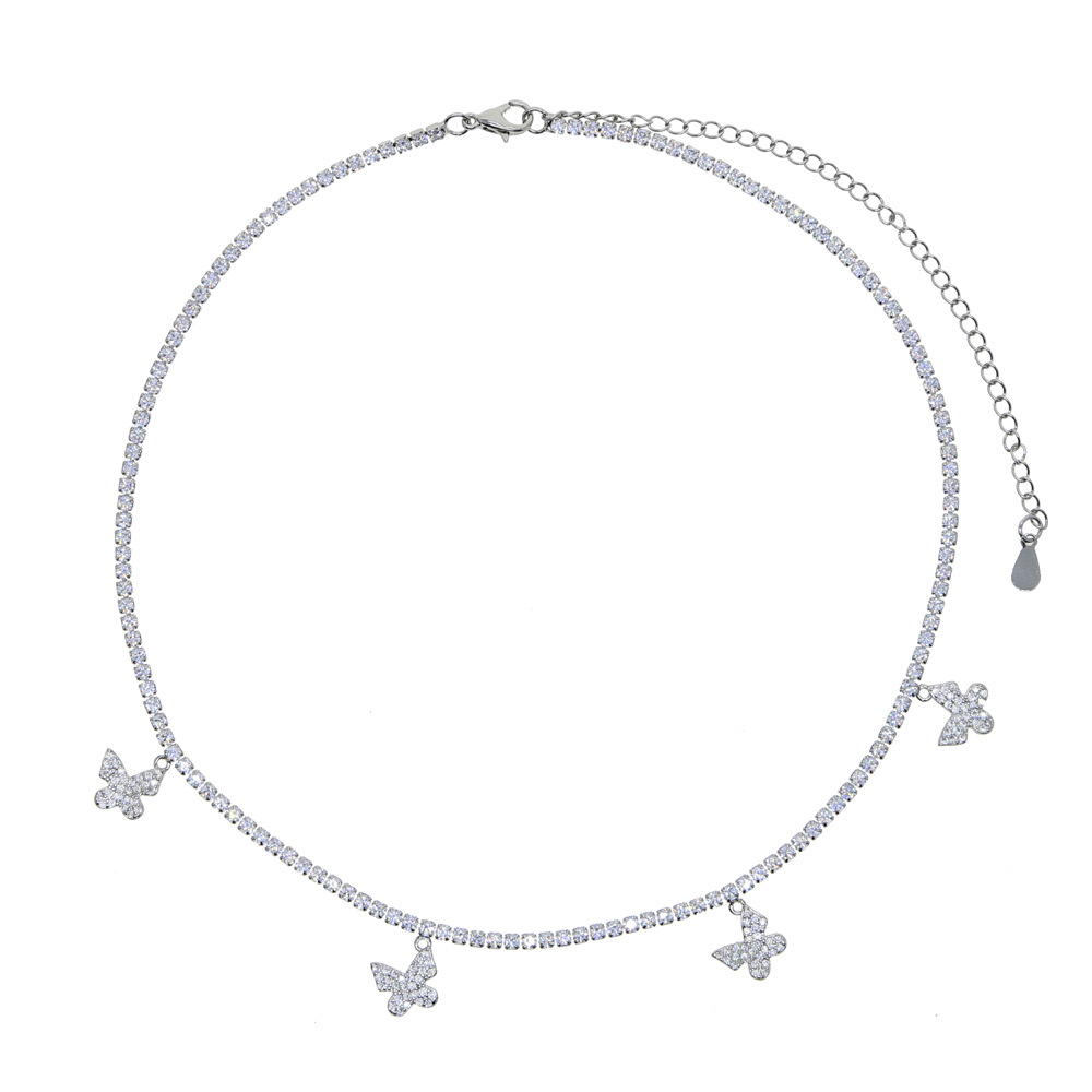 流行の新しい蝶のペンダント2mmのジルコンのテニスのチェーンの女性のネックレスのtennisチェインの装飾品の現物