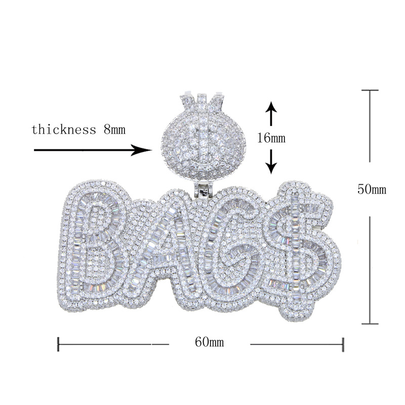 欧米のinsの新型のbagドルの記号のお金の袋のペンダントの越境の商品のソースはジルコンのヒップホップの装飾品のネックレスを入れます。