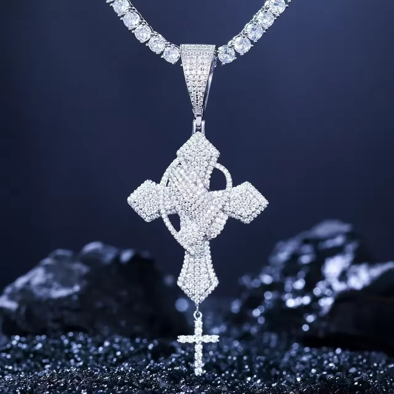 速売通の外国貿易の新型の金色の銀色のクロスのジルコンのペンダントの欧米のファッションのファッションの男性式のネックレスの卸売り