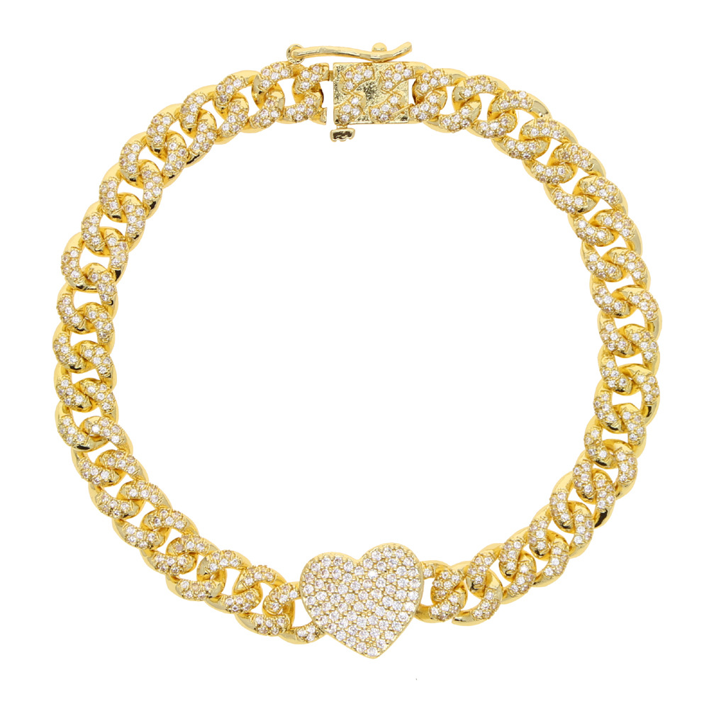 国境を越えたヒップホップの新型7mmキューバチェーンとハート型ペンダントブレスレットにジルコンcubanチェーンアクセサリースポット