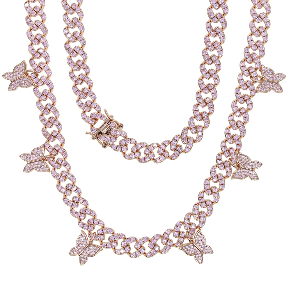 Hiphop 9mm蝶ジルコンネックレスヒップホップアクセサリーアマゾンwishレディースネックレスクロスボーダー新作