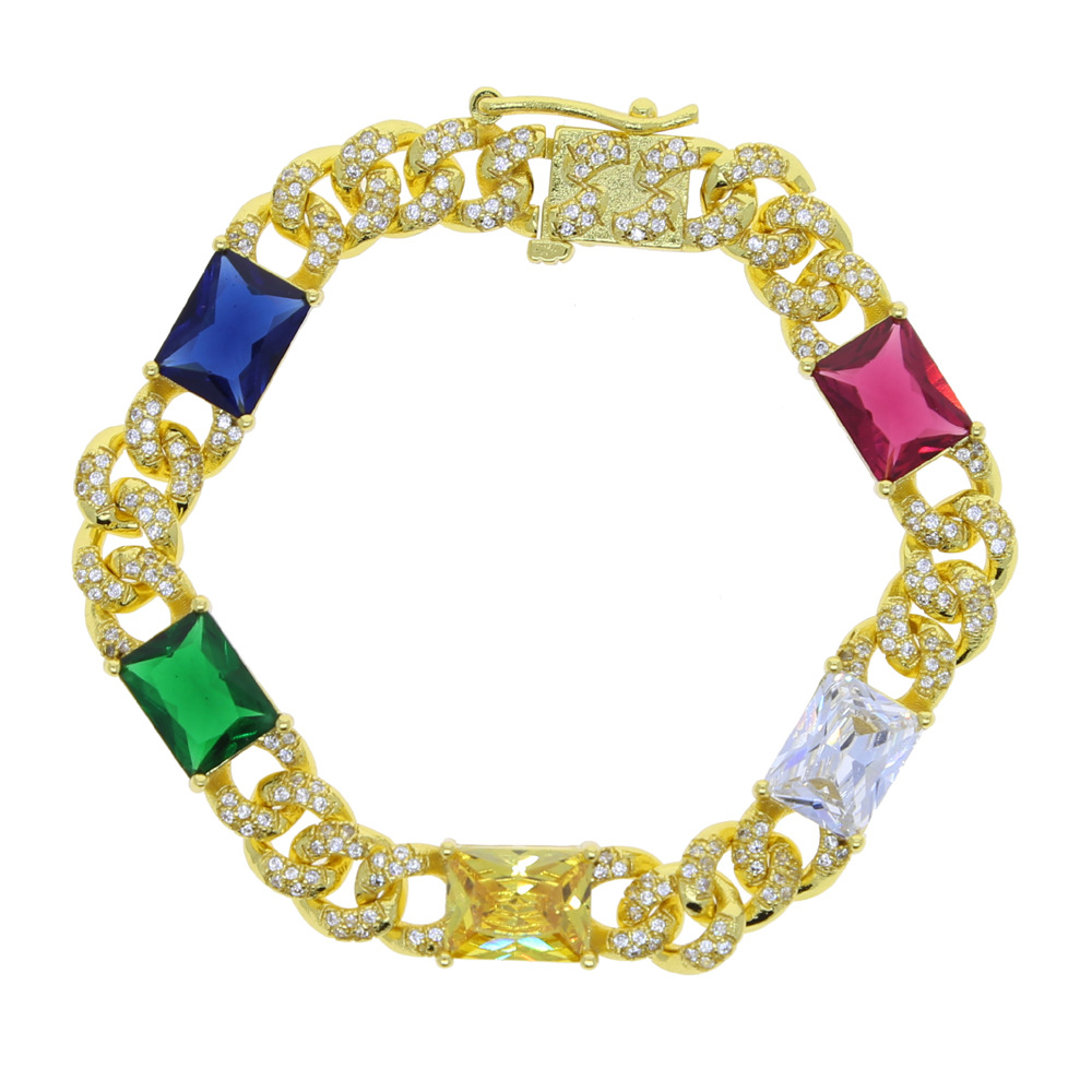 ヒップホップ新型7mm角型カラージルコンスキューブブレスレット欧米ファッションins風レディースcuban chain