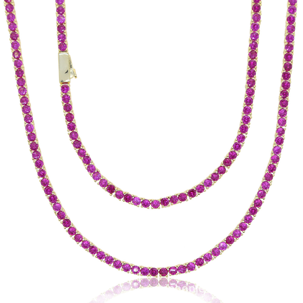 欧米の新型の3mmの金色の赤いコランダムのジルコンのテニスのチェーンのネックレスのラップinsはジルコンのtennisチェインをいっぱい満たします。