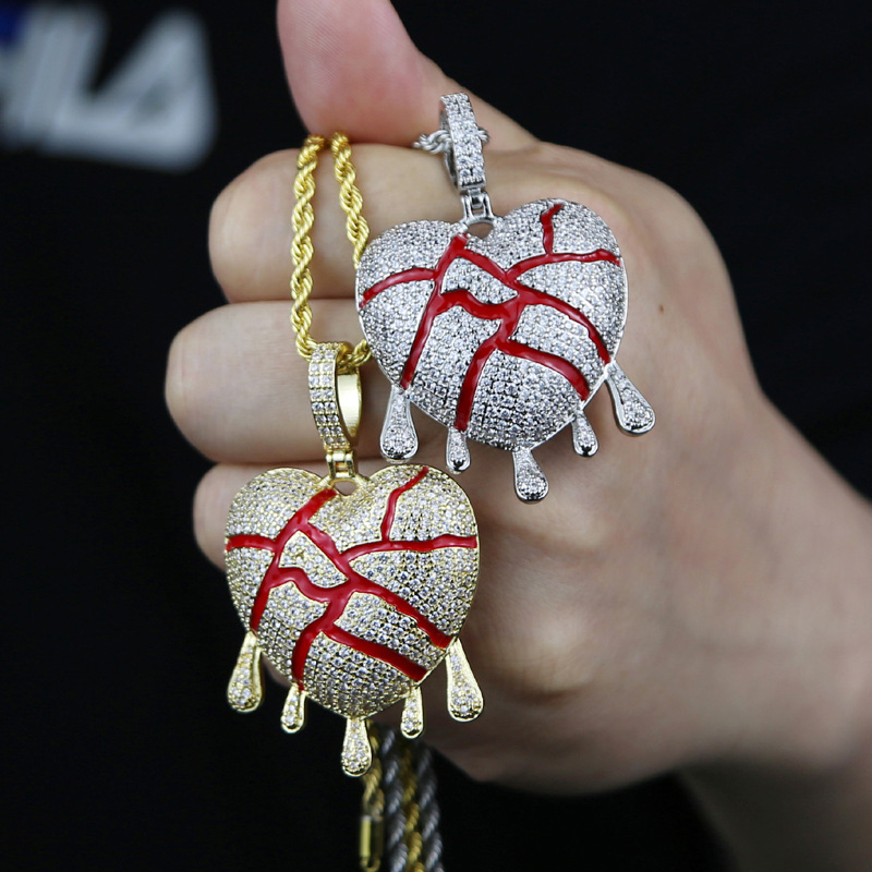 ヒップホップの新しい赤い滴油ハート型ペンダントにジルコンを入れると、スキューバチェーンのネックレスを着ることができます。