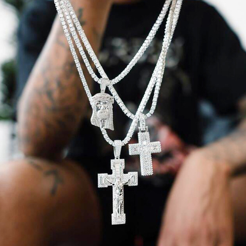 アマゾンwishの新しい十字架ジルコンペンダントにジルコニウムを入れた男性ヒップホップネックレスの国境を越えたアクセサリー代発