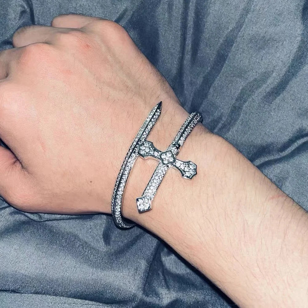クロスボーダーヒップホップ新作正義の剣ブレスレット、欧米ファッショントレンド、ジルコン付きゴールド・シルバーブレスレット、在庫あり