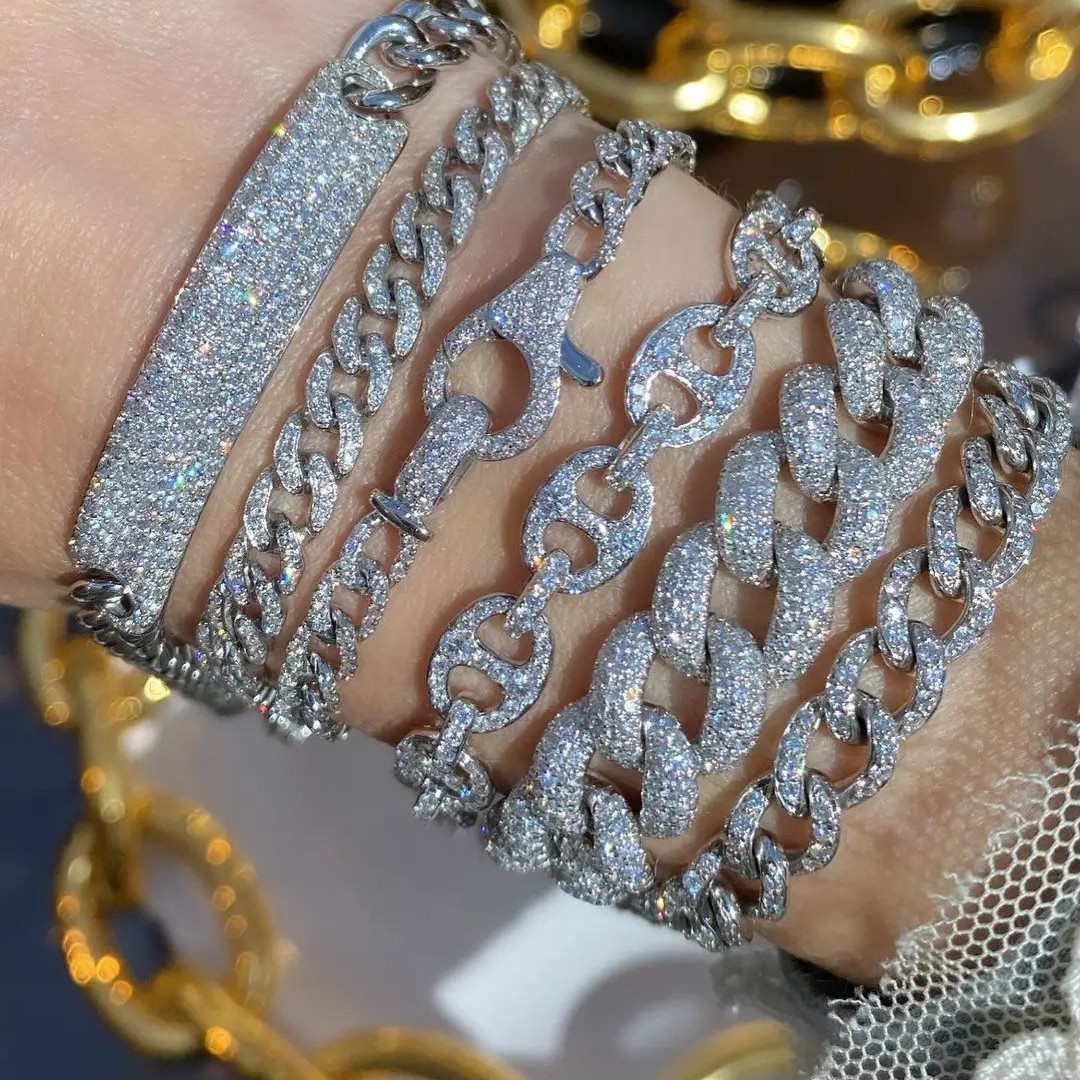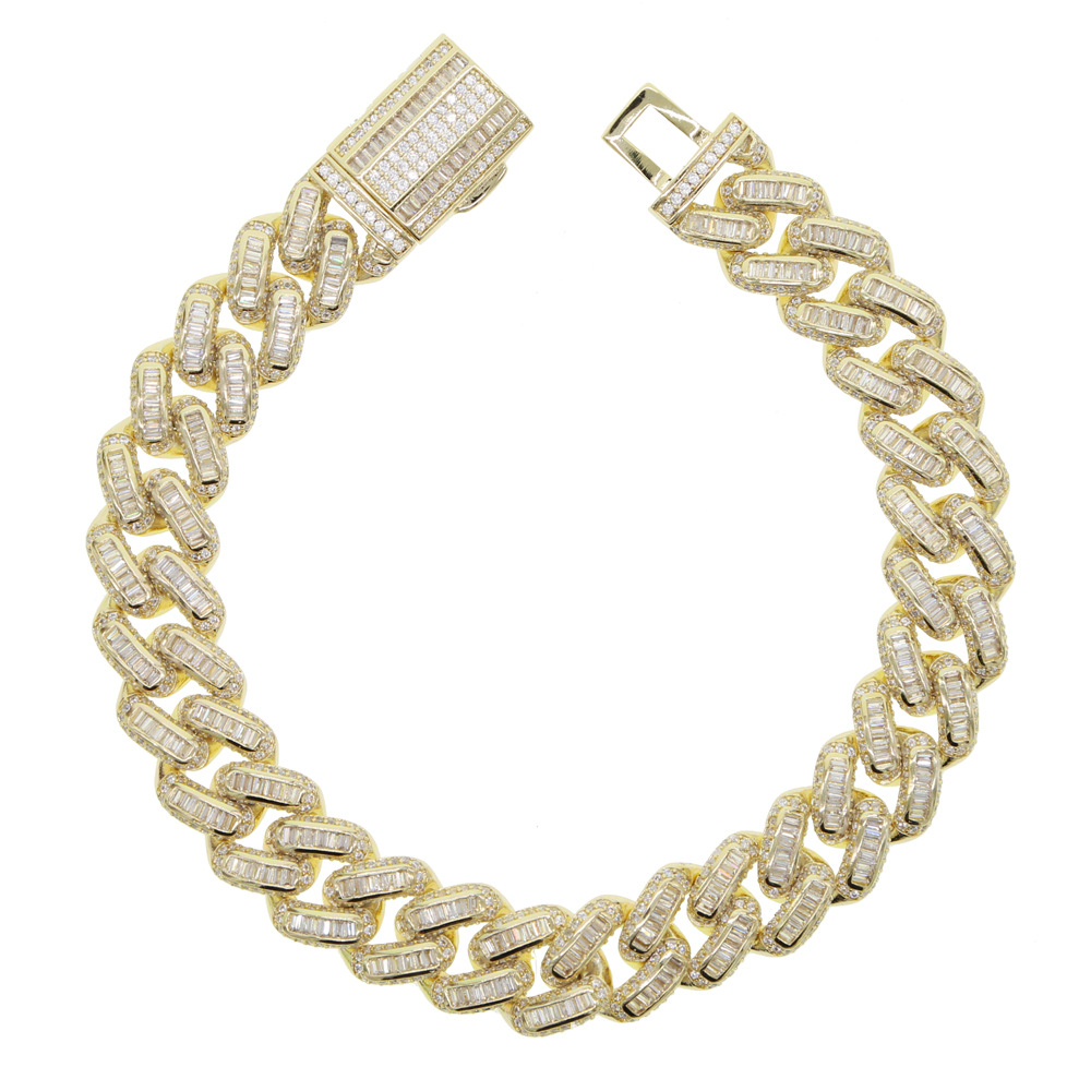 クロスボーダーヒップホップ新型14mm長ジルコンブレスレットhiphopファッションシンプル個性男性ブレスレット