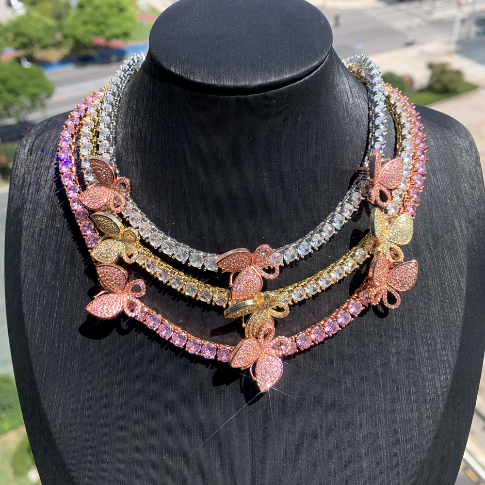 速売通新型5mmジルコンtennisチェーンネックレスins風ヒップホップジルコン蝶ネックレス卸売り