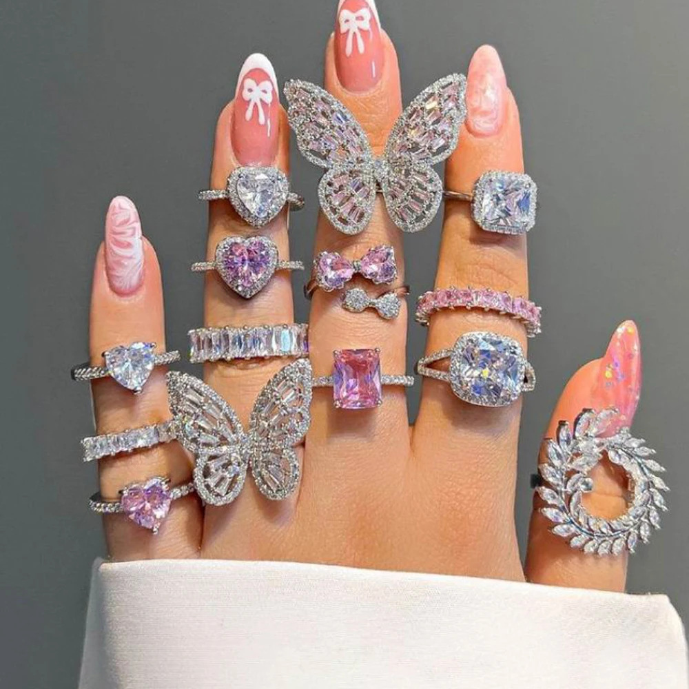 クロスボーダーのヒップホップの新型カラーの正方形のジルコンの蝶の指輪の欧米のファッションの経典の百合の女性の流行の指輪
