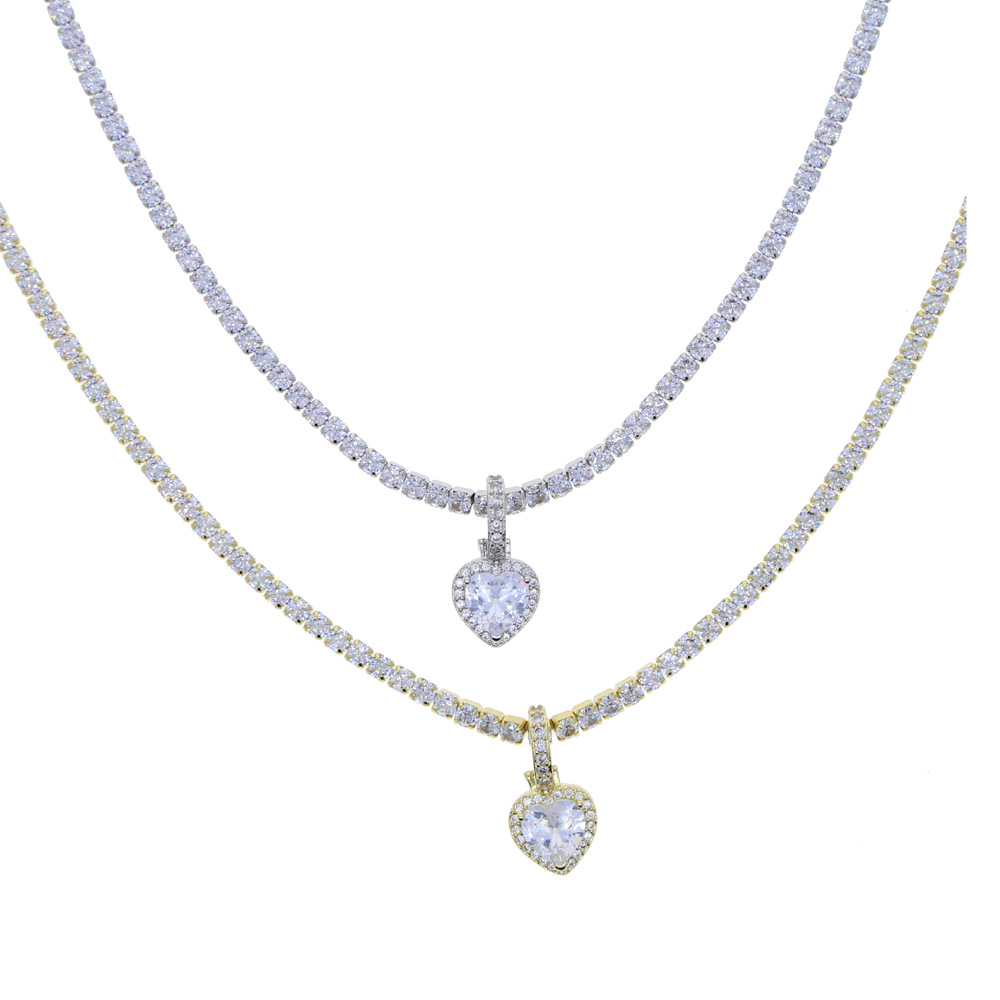 クロスボーダーの新型3mmテニスチェーンの愛のジルコンのペンダントのネックレスのファッションins風の女性はジルコンのアクセサリーの卸売りを入れます。