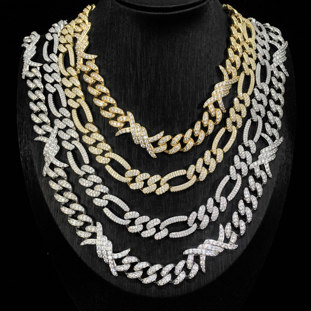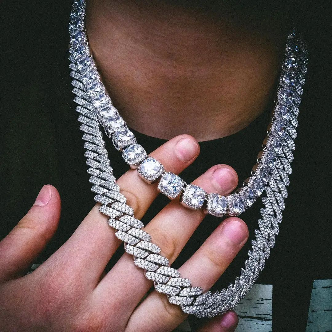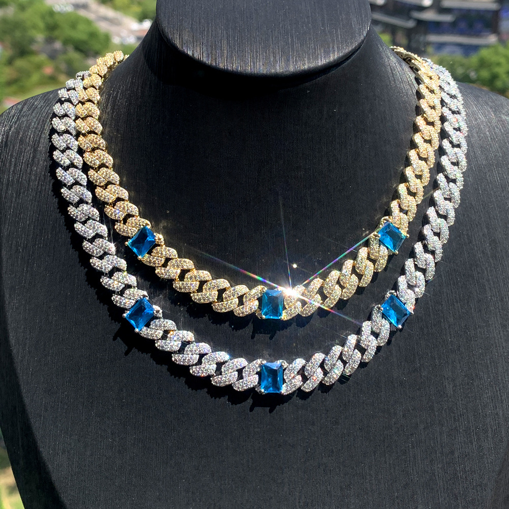 15mm幅のジルコンのスキューバチェーンのヒップホップアクセサリーのファッションの女性は少しジルコンの欧米の満ドリルの越境する新型のネックレスを入れます。