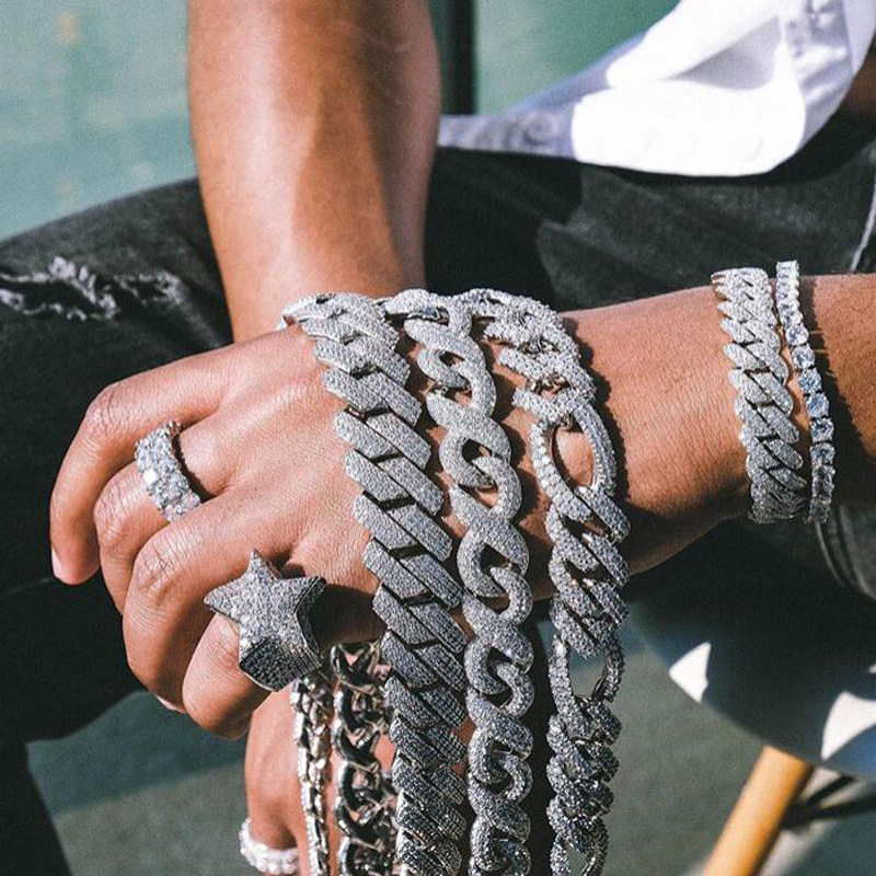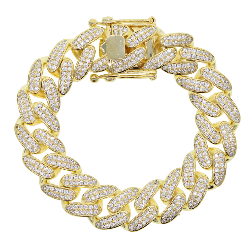 Hiphop新型18mm二列ジルコンブレスレット欧米ファッション男性ヒップホップcubanチェーンブレスレット