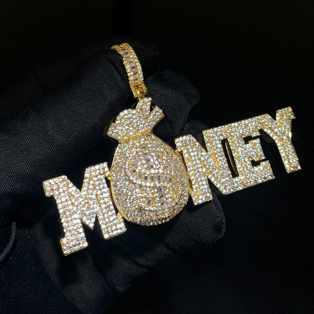 街頭の潮人の個性のヒップホップのmoneyのお金の袋は欧米の潮流を飾ってドリルいっぱいの男性のネックレスの卸売りを入れます。