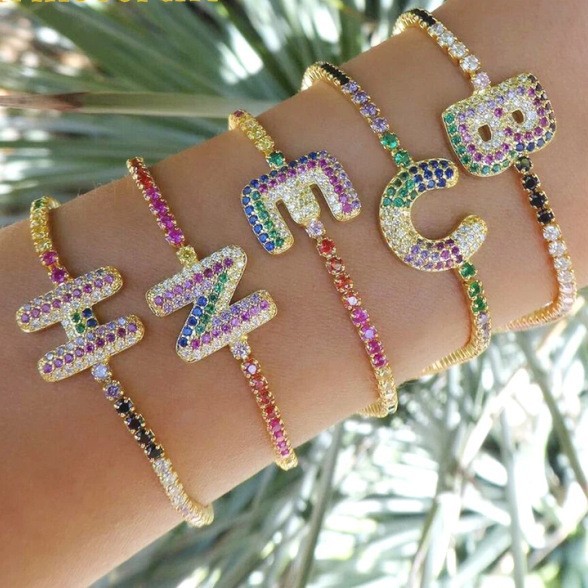 速卖通貿易26文字ジルコニアブレスレット 欧米ファッションins風レディースヒップホップブレスレット卸売トレンド