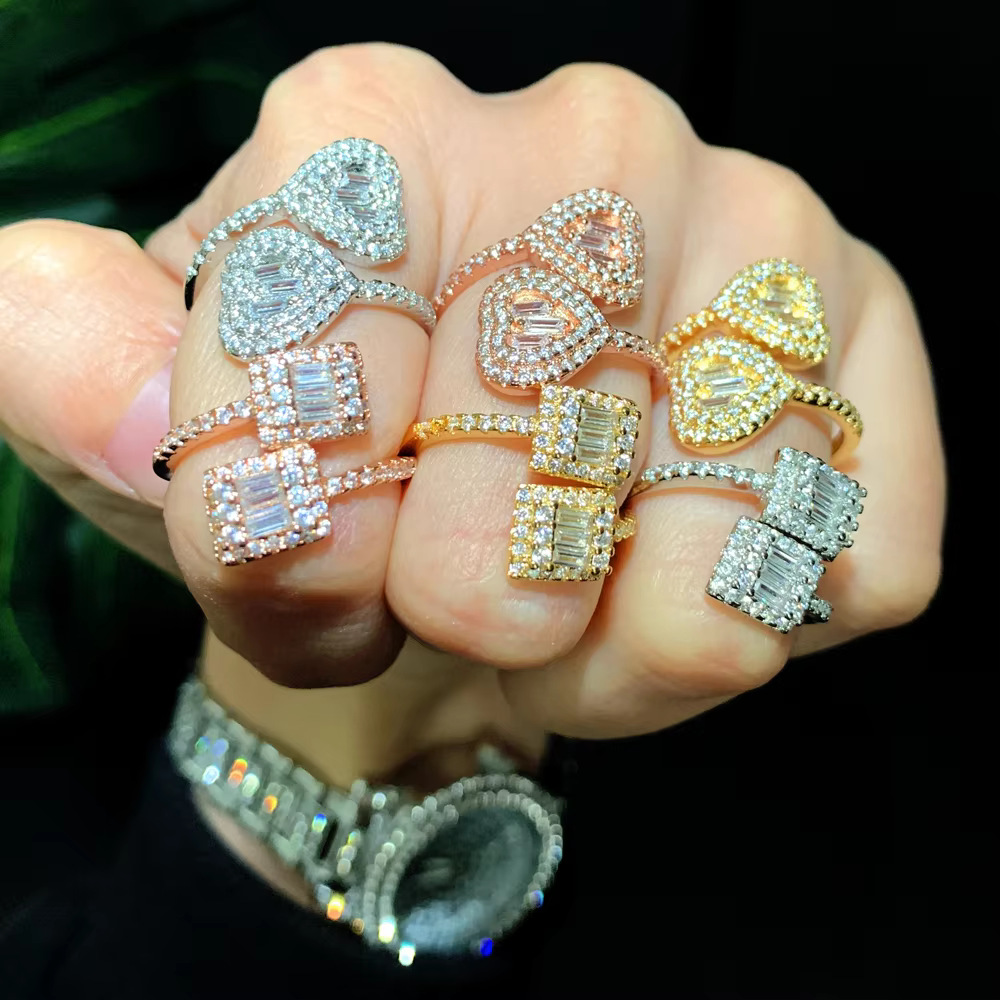 欧米の正方形のジルコンの指輪の潮人のまぶしいinsはダイヤモンドの女性の指輪のクロスボーダーのヒップホップの新型を入れます。